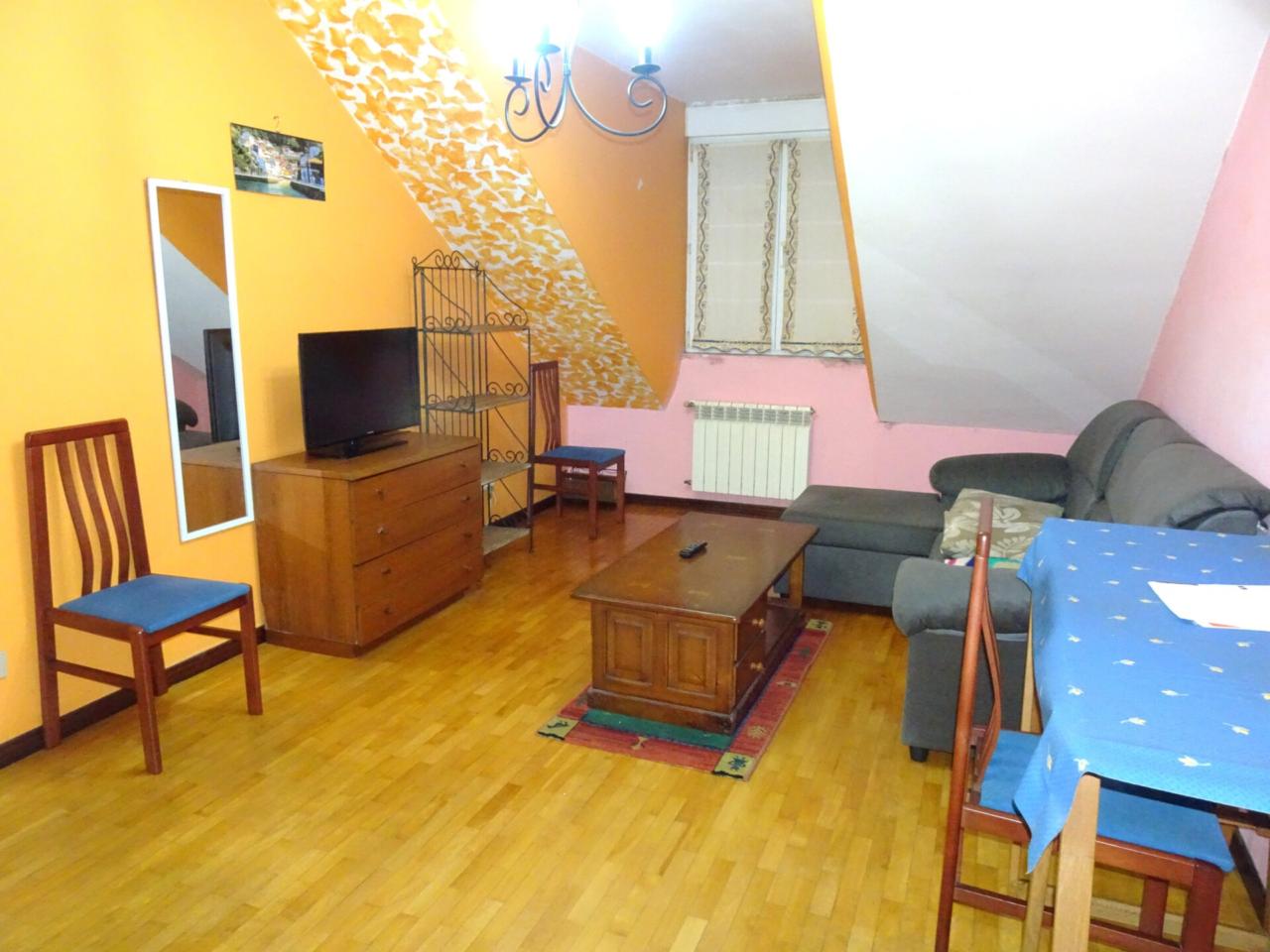 • Descripción Superf. 45 m², 1 habitación individual, 1 baño, cocina (vitro, independiente), comedor, suelos parquet y gres, ascensor, calefacción, muebles, puerta blindada, portero automático, vidrios dobles, año construcción 2003, gastos comunidad incluida 63€, exterior, Certificación Energética (E) , bajocubierta. NO MASCOTAS.